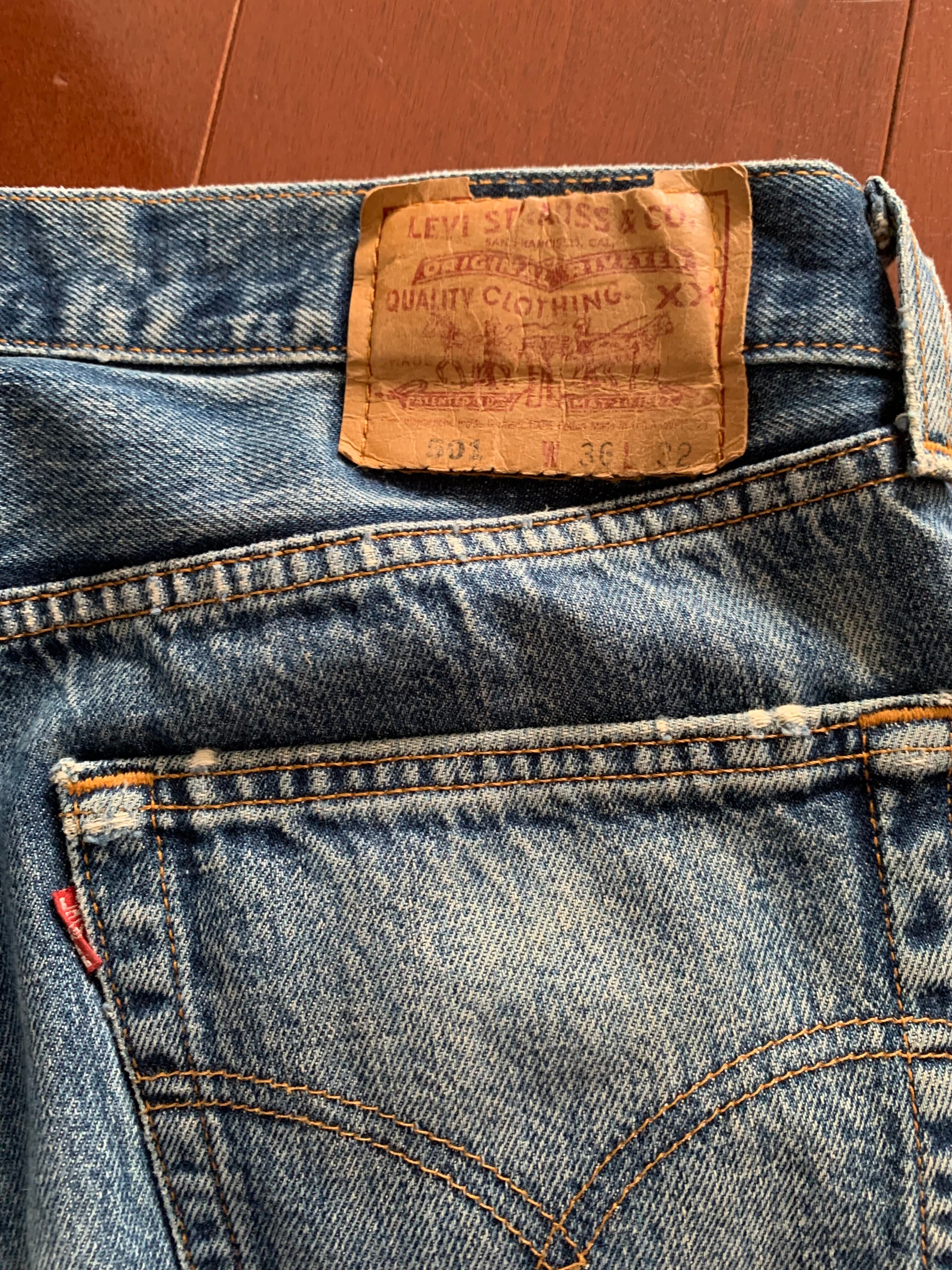 ユーズドなので裾に破れや生地が薄くなっている箇所はありますが